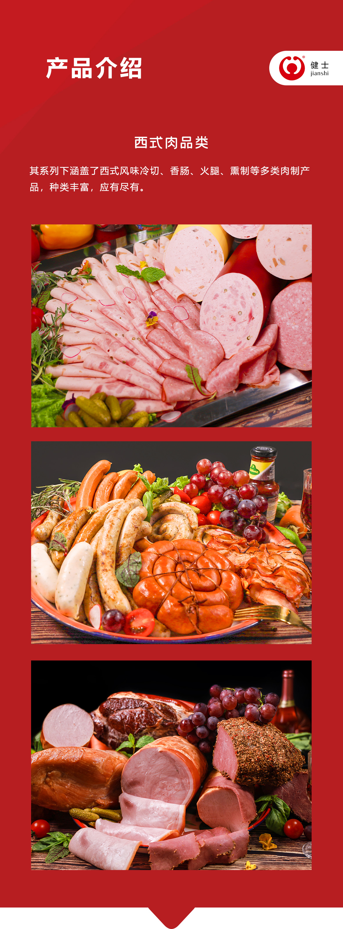 公司注冊(cè)商標(biāo)為“健士”,主營(yíng)業(yè)務(wù)涉及西式肉制品、中式預(yù)制半成品,以及與國(guó)家級(jí)鮭鱒魚(yú)養(yǎng)殖基地深度合作開(kāi)發(fā)的高端水產(chǎn)品,公司旗下還設(shè)立了清真食品分公司,將業(yè)務(wù)延伸至清真肉制品加工領(lǐng)域。公司秉承“誠(chéng)信為本,客戶至上,團(tuán)結(jié)奮進(jìn),追求卓越”的經(jīng)營(yíng)理念。產(chǎn)品銷(xiāo)往全國(guó)各大城市星級(jí)酒店、航空配餐企業(yè)及大型連鎖餐飲,部分產(chǎn)品遠(yuǎn)銷(xiāo)至香港等地區(qū)。