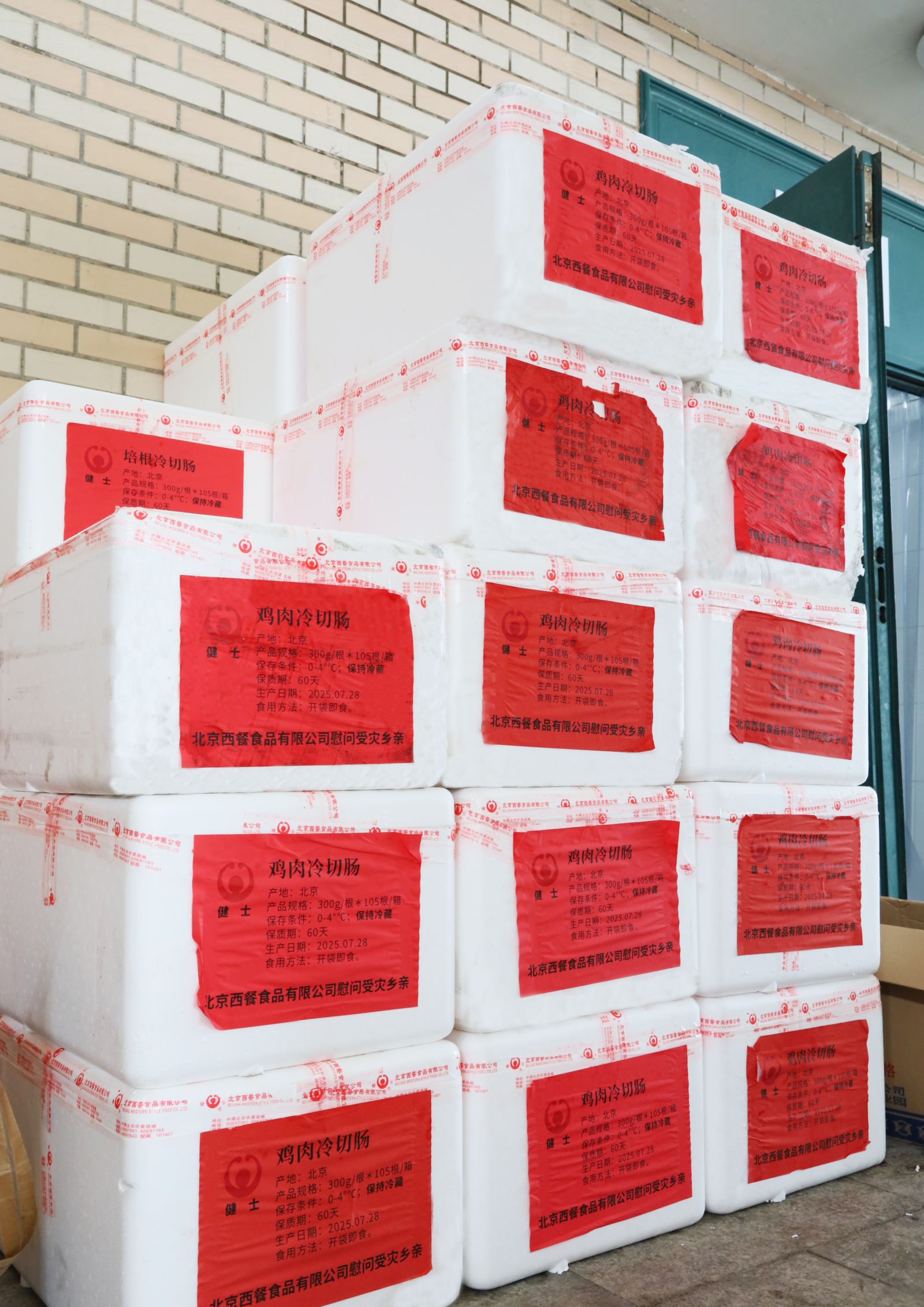 為了能讓受災(zāi)群眾盡快吃上這些食品,公司緊急動員全體員工。集中生產(chǎn)此次捐贈物資,切斷了一條生產(chǎn)線,停掉其他產(chǎn)品的生產(chǎn),以保證捐贈物資能第一時間保質(zhì)、保鮮送到受災(zāi)地區(qū)。經(jīng)過全體員工的不懈努力,7月29日,通過區(qū)民政局、區(qū)慈善協(xié)會完成首批物資捐贈,向區(qū)級安置點北京市學(xué)生軍訓(xùn)基地捐贈28箱冷切腸,共882公斤,合計52920元。