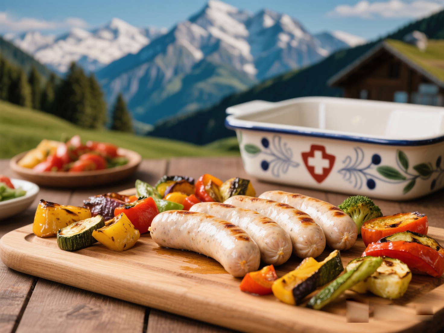 特點(diǎn):煎烤后腸衣脆彈,搭配烤制蔬菜,體現(xiàn)瑞士風(fēng)味與傳統(tǒng)工藝的完美結(jié)合。