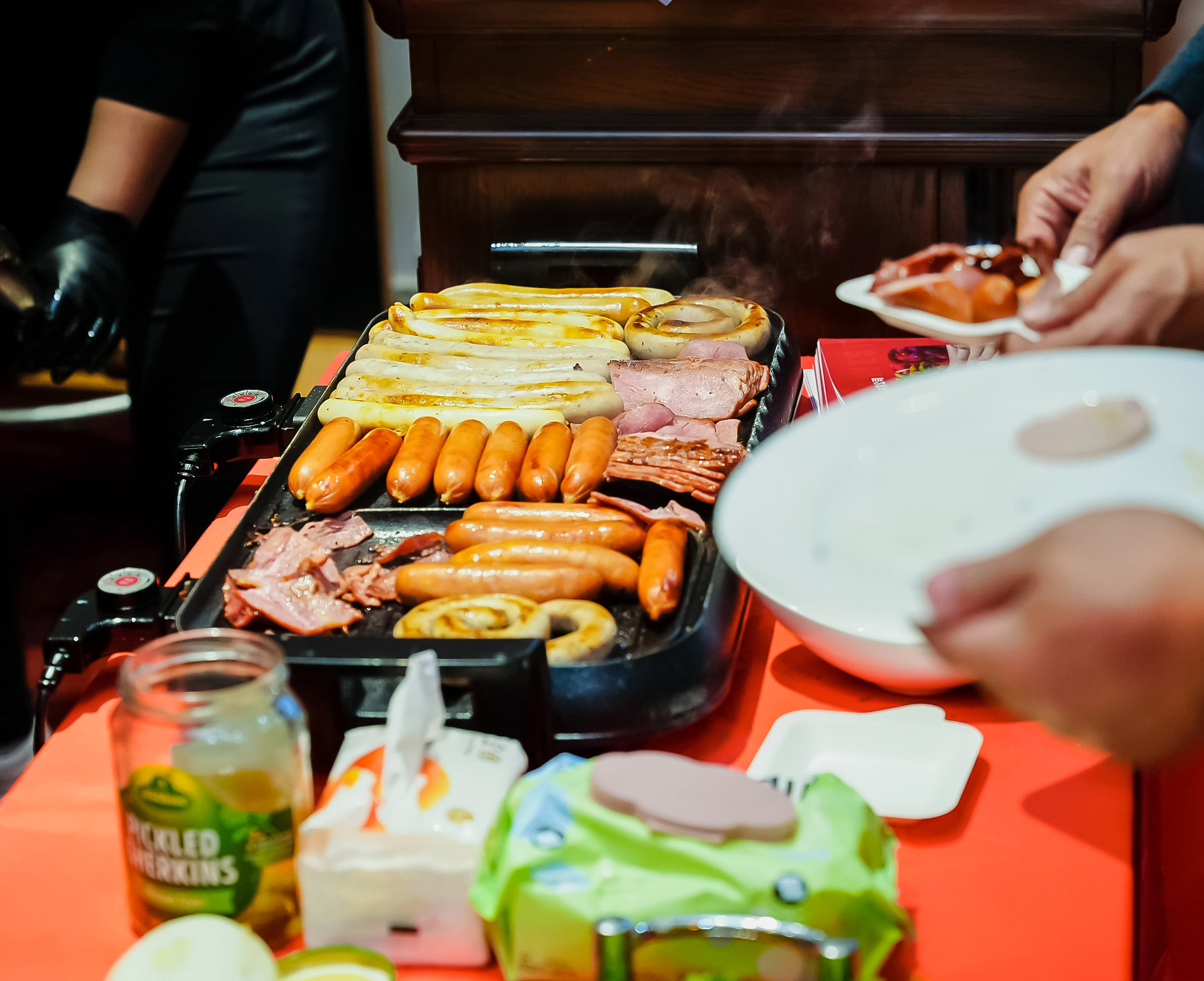 剛剛結(jié)束比賽的運(yùn)動員、忙碌的工作人員與興致勃勃的游客們紛紛被吸引至我們的展位。大家品嘗到熱騰騰、肉汁飽滿的香腸與焦香適宜的培根,更可現(xiàn)場購買,將這份便捷與美味帶回家。我們的展位前一度排起長隊,成為了市集中一道亮麗的風(fēng)景線和溫暖的補(bǔ)給站。