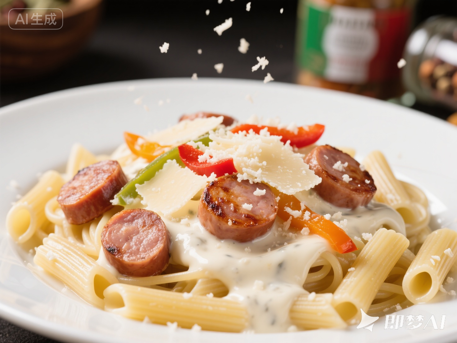 烤腸的黑椒風(fēng)味融入奶油醬汁,與意面完美結(jié)合,辛辣中帶著奶香。