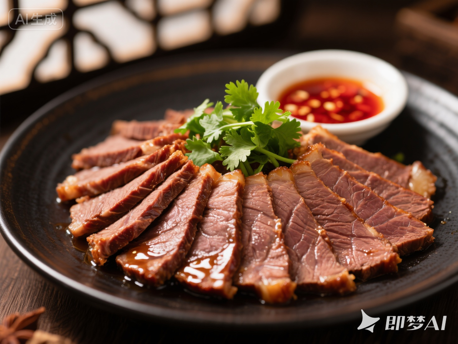 ① 切片:將醬牛肉從包裝中取出,逆著牛肉的紋理切成薄厚均勻的片狀(約2-3毫米厚);