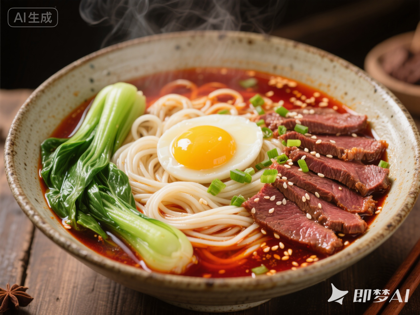 將冷食的醬牛肉轉(zhuǎn)化為一碗熱氣騰騰的湯面主角,醬牛肉的鹵香融入湯中,風(fēng)味升華。